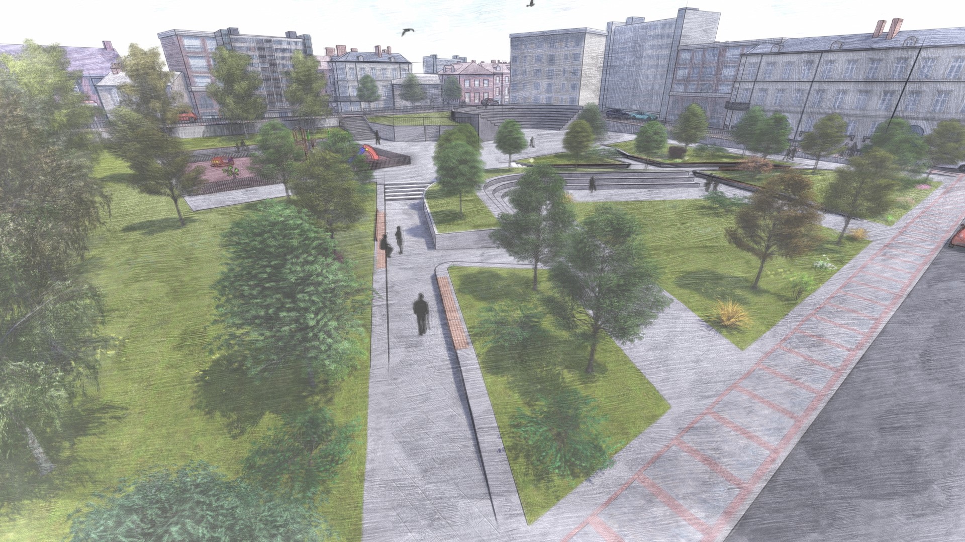 Σε όλο το φάσμα και τις λεπτομέρειες του έργου, θα γίνει αποκατάσταση των ήδη υπαρχόντων χώρων πρασίνου με την τοποθέτηση νέου χλοοτάπητα αλλά και θα δημιουργηθούν νέοι χώροι πρασίνου περίπου 265 τ.μ..