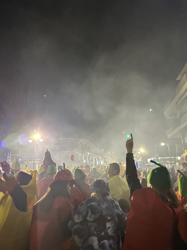 Η φετινή διαδρομή κινήθηκε στη Λεωφόρο Ειρήνης, που έγινε το βασικό σημείο συνάντησης και το “σκηνικό” της γιορτής. Σειρά πήραν ομάδες με ευρηματικές μεταμφιέσεις, μουσική και χορό, ενώ η σάτιρα δεν έλειψε—με μικρά σχόλια και ιδέες που θύμιζαν ότι η Αποκριά είναι και παιχνίδι και διάθεση.