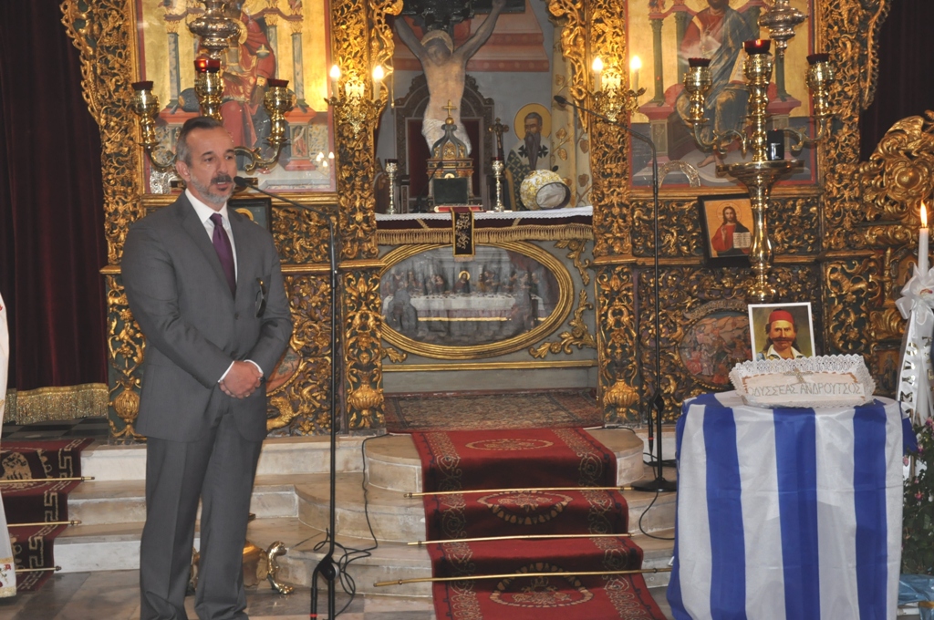 Σήμερα μαζευτήκαμε εδώ για να αποτίσουμε φόρο τιμής ως ελάχιστη ένδειξη ευγνωμοσύνης στη μέγιστη αυτή μορφή του Εθνικού μας αγώνα».