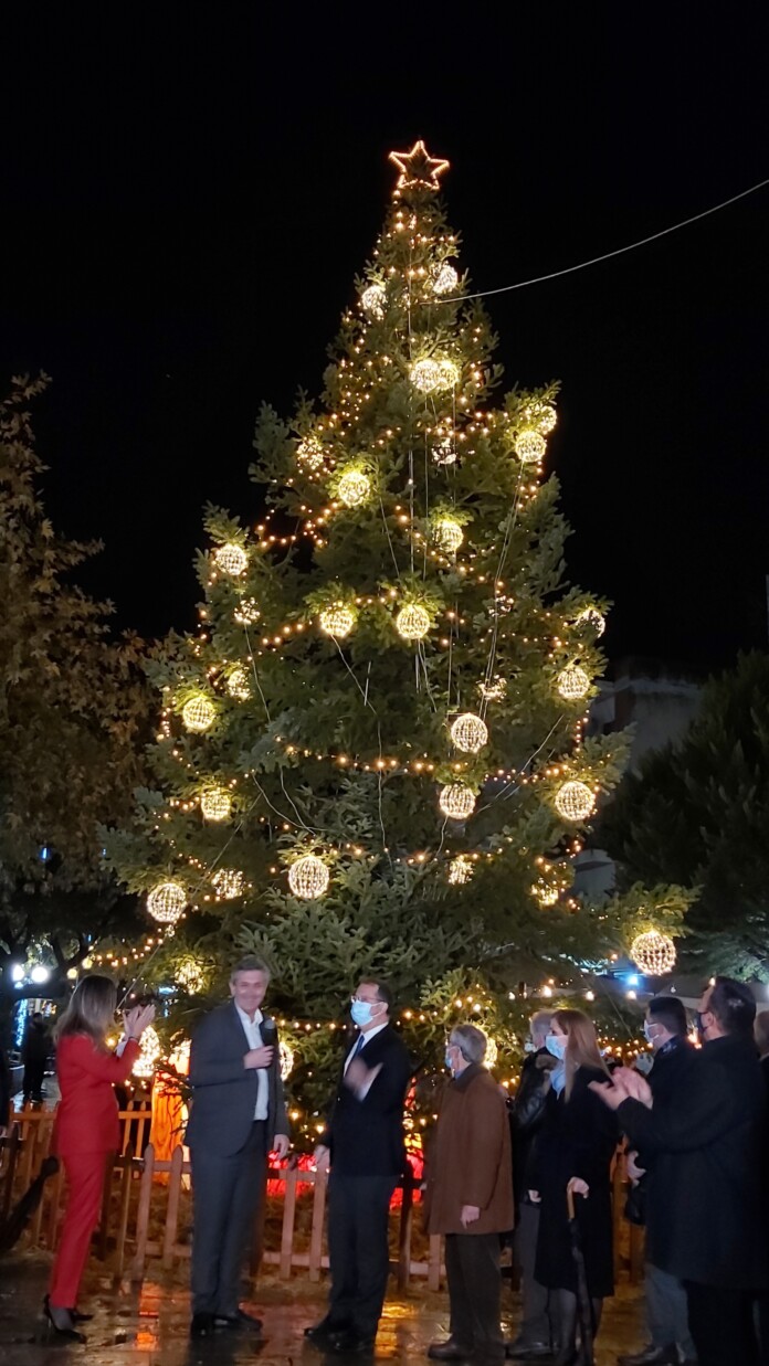 «Είναι μεγάλη χαρά και τιμή που ανάβουμε το δέντρο μας μαζί με την Υφυπουργό Τουρισμού Σοφία Ζαχαράκη. Ένα γεγονός που υποδηλώνει το ενδιαφέρον της για την τουριστική ανάπτυξη της περιοχής μας. Το 2022 να είναι μια χρονιά υγείας, αισιοδοξίας και δημιουργίας. Ξεκινάμε από το κέντρο του Δήμου μας και φωτίζουμε όλη την πόλη, τα χωριά μας και όλες τις γειτονιές. Θέλουμε να έχουμε την πόλη μας φωτεινή, γιορτινή, αισιόδοξη. Καλές γιορτές με υγεία και δύναμη».