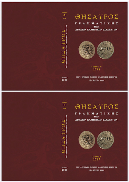 - «Τον (δίτομο) Θησαυρό Γραμματικής των αρχαίων Ελληνικών διαλέκτων» που πρωτοεκδόθηκε το 1796 (α΄τόμος) – 1797 (β΄ τόμος) στη Βούδα της Ουγγαρίας από τον «Ιερεύσιν ελάχιστο Πολυζώη Κόντο, δασκάλου εξ Ιωαννίνων».