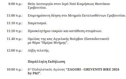 «Με συγκίνηση, αλλά και δέος, θα βρεθούμε και φέτος στο Γρεβενίτι, για την ημέρα μνήμης που γιορτάζουμε κάθε χρόνο στον τόπο μαρτυρίου των εκτελεσθέντων από τα Γερμανικά στρατεύματα συνδημοτών μας.