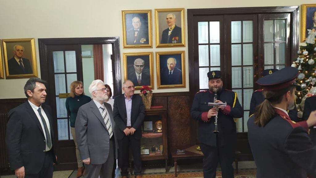 Ο δήμαρχος ακούει τα κάλαντα από την Φιλαρμονική του Πνευματικού Κέντρου του Δήμου Ιωαννιτών.