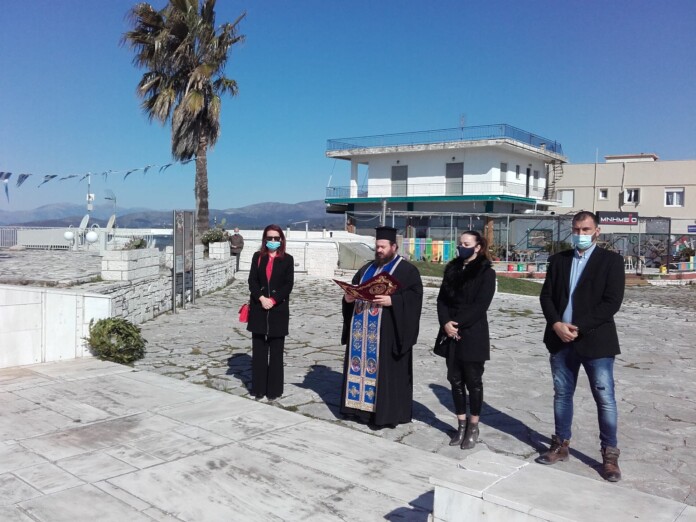 Χωρίς την παρουσία κόσμου και με την αυστηρή τήρηση των υγειονομικών μέτρων, πραγματοποιήθηκε αρχικά η επιμνημόσυνη δέηση και ακολούθησε η κατάθεση στεφάνων.