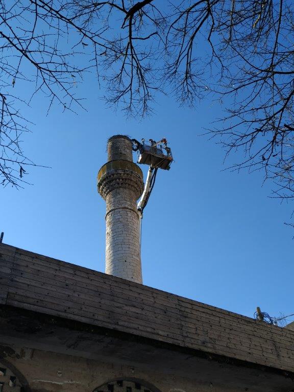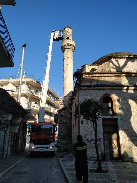 Με τη συνδρομή της Πυροσβεστικής Υπηρεσίας Ιωαννίνων, που διέθεσε το ειδικό γερανοφόρο όχημα, που έχει τη δυνατότητα ανύψωσης στα 25 μέτρα, η υπηρεσία του εργοταξίου του δήμου Ιωαννιτών, καθάρισε τη φωλιά των πελαργών στο τζαμί της Καλούτσανης.