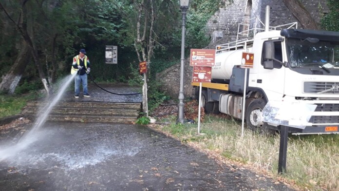 Τις τελευταίες ημέρες τα συνεργεία προχώρησαν σε καθαρισμό και απολύμανση των πυλών του Κάστρου, ενώ η επιχείρηση θα συνεχιστεί και σε άλλους κοινόχρηστους χώρους της πόλης.