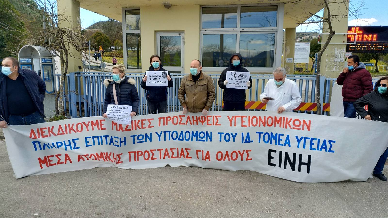 Κινητοποίηση του ΕΚΙ, σωματείων και φορέων της πόλης πραγματοποιηθηκε σήμερα στο Πανεπιστημιακό Νοσοκομείο Ιωαννίνων και στο Γενικό Νοσοκομείο ”Χατζηκώστα”.