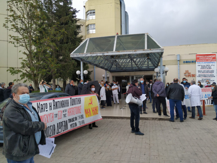 Το πρωί της Τετάρτης, με την 7η Απριλίου να εορτάζεται ως Παγκόσμια Ημέρα Υγείας, πραγματοποιήθηκε συγκέντρωση των συμβασιούχων του νοσοκομείου αλλά και των φορέων που τους στηρίζουν, όπως και εργαζόμενων του νοσοκομείου με μόνιμη σχέση εργασίας, που αναγνωρίζουν ότι χωρίς τους συμβασιούχους, θα ήταν αδύνατο να λειτουργήσει το νοσοκομείο.