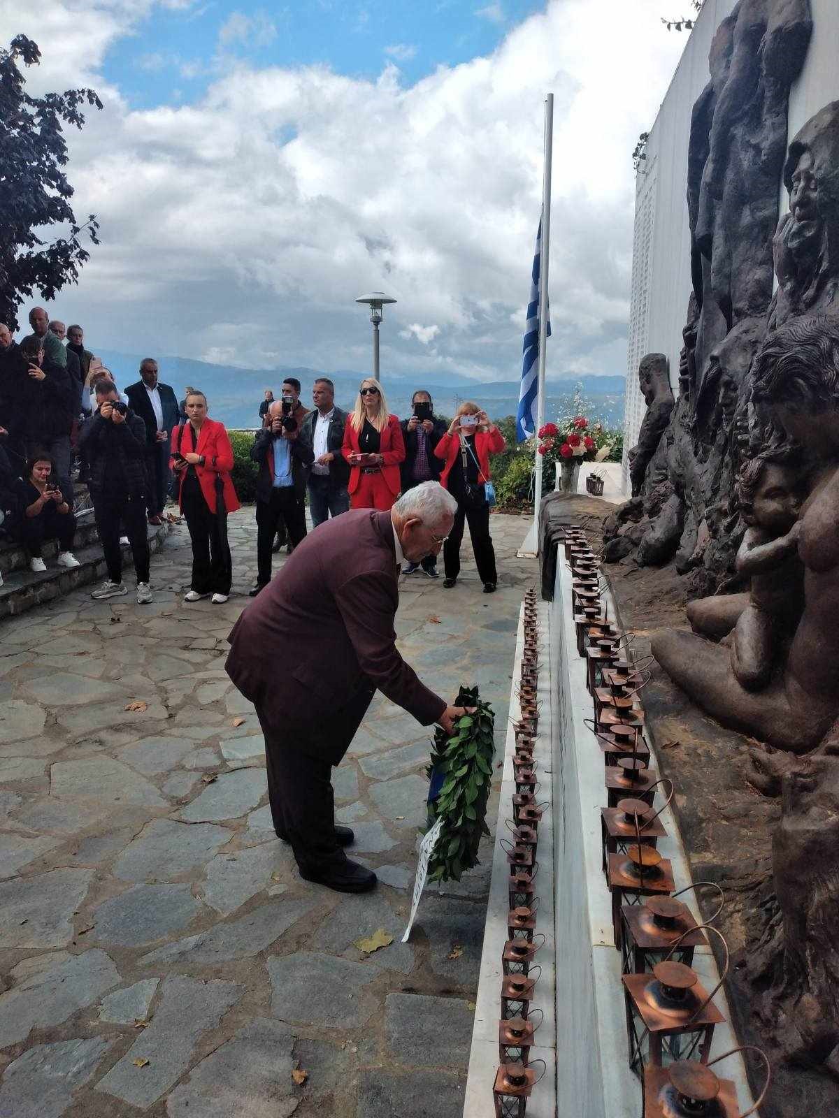Ακολούθησε το προσκλητήριο νεκρών και η κατάθεση στεφάνων με τον μοναδικό επιζώντα της ημέρας εκείνης, τον Παναγιώτη Μπαμπούσκα να καταθέτει πρώτος στεφάνι καταχειροκροτούμενος. Μεταξύ εκείνων που κατέθεσαν στεφάνι και η Γεν. Πρόξενος της Ομοσπονδιακής Δημοκρατίας της Γερμανίας στη Θεσσαλονίκη, αλλά και μία ομάδα μελών του Δικτύου Μαρτυρικών Πόλεων και Χωριών Ελλάδας.