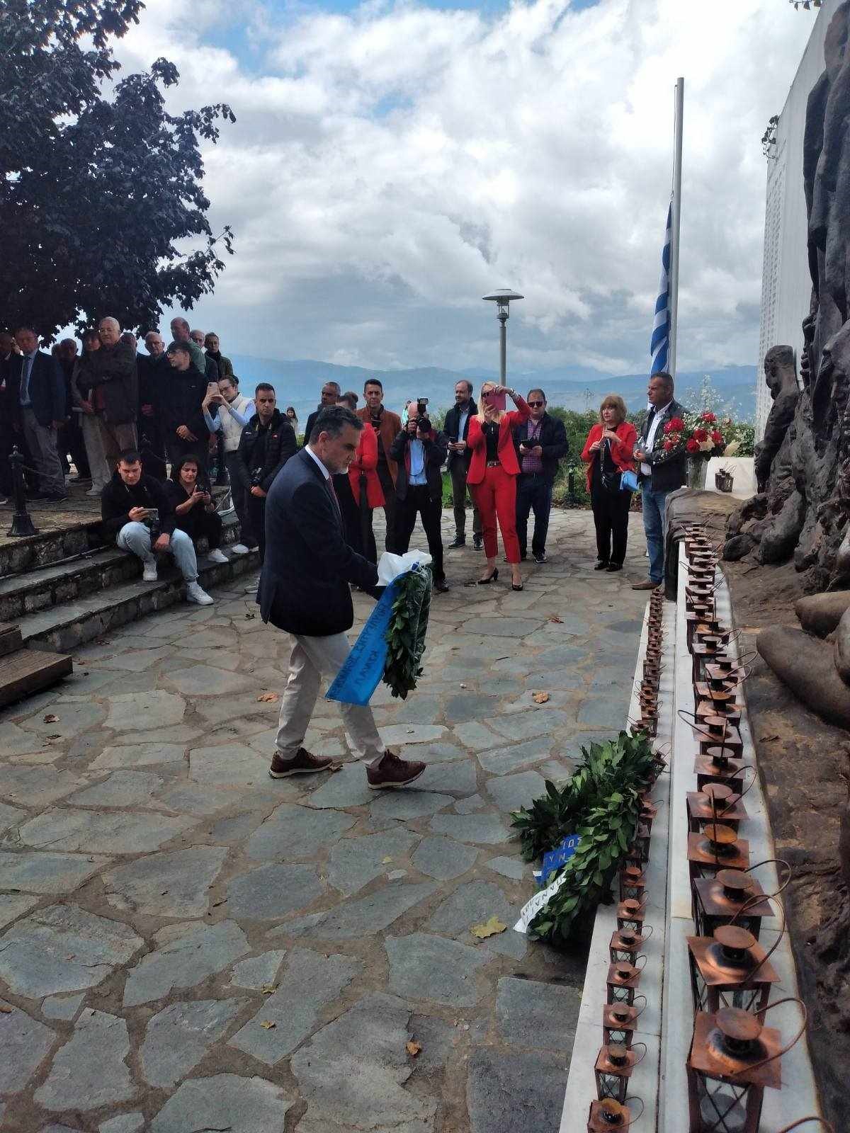 Ακολούθησε το προσκλητήριο νεκρών και η κατάθεση στεφάνων με τον μοναδικό επιζώντα της ημέρας εκείνης, τον Παναγιώτη Μπαμπούσκα να καταθέτει πρώτος στεφάνι καταχειροκροτούμενος. Μεταξύ εκείνων που κατέθεσαν στεφάνι και η Γεν. Πρόξενος της Ομοσπονδιακής Δημοκρατίας της Γερμανίας στη Θεσσαλονίκη, αλλά και μία ομάδα μελών του Δικτύου Μαρτυρικών Πόλεων και Χωριών Ελλάδας.