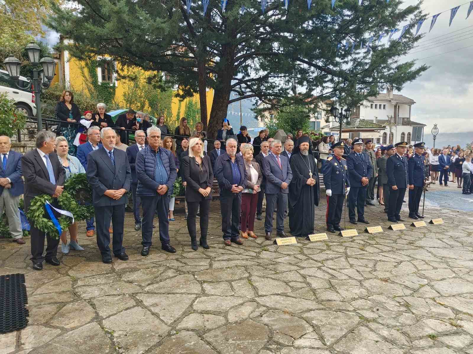 Η μνήμη των ηρώων του ΄40 τιμήθηκε το Σάββατο 28 Οκτωβρίου με Θεία Λειτουργία και Δοξολογία στον Ιερό Ναό του Αγίου Κοσμά του Αιτωλού, ιερουργούντος και προεξάρχοντος του Γραμματέα του Συνοδικού Γραφείου Προσκυνηματικών Περιηγήσεων της Εκκλησίας της Ελλάδος π. Σπυρίδωνος Κατραμάδου, ο οποίος αναπλήρωσε τον Μητροπολίτη Δρυϊνουπόλεως Πωγωνιανής και Κονίτσης κ.κ. Ανδρέα, που λόγω ανειλημμένων υποχρεώσεων απουσίαζε, με επιμνημόσυνη δέηση και κατάθεση στεφάνων που τελέστηκαν στο μνημείο Ηρώων στο προαύλιο του Δημαρχείου και ομιλία από τον Διευθυντή του Α’ Δημοτικού Σχολείου κ. Ιωάννη Λάμπρο με θέμα: «28η Οκτωβρίου! Μνήμη και Ιστορία».