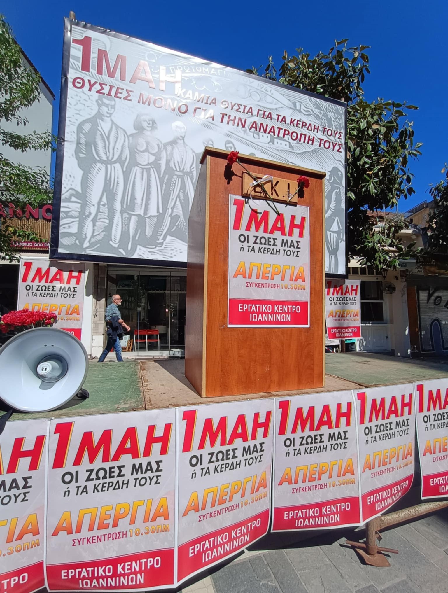 Η πρώτη συγκέντρωση οργανώθηκε από το Εργατικό Κέντρο Ιωαννίνων, με τη συμμετοχή πρωτοβάθμιων σωματείων και εκπροσώπων από διάφορους εργασιακούς κλάδους. Συνδικαλιστές που απηύθυναν χαιρετισμούς έθεσαν στο προσκήνιο τα πάγια αιτήματα του κόσμου της εργασίας για αξιοπρεπείς αμοιβές, σταθερή και ασφαλή εργασία, κατοχύρωση των συλλογικών συμβάσεων και στήριξη των κοινωνικών δομών.