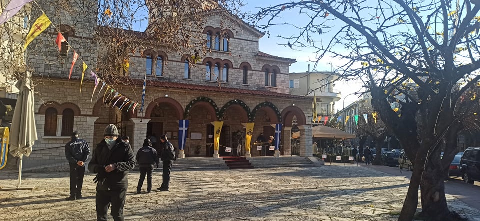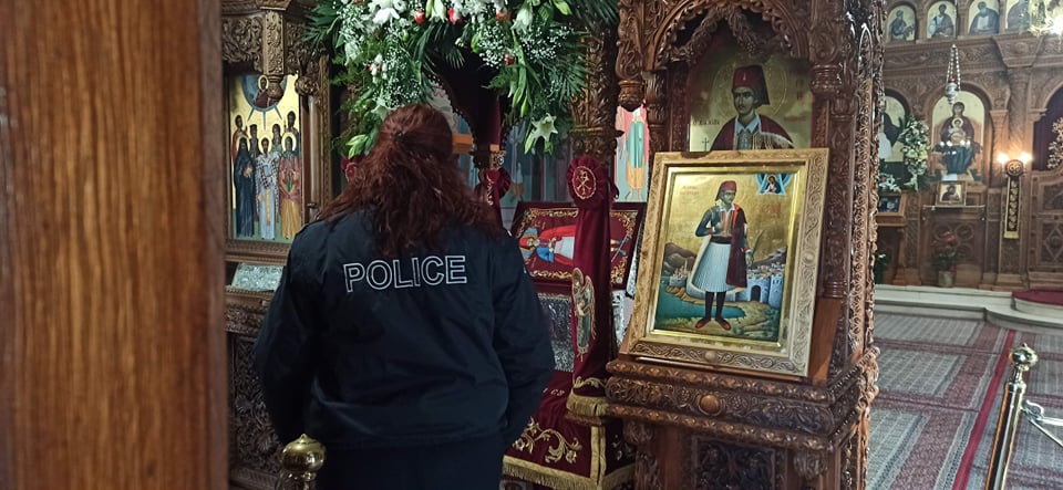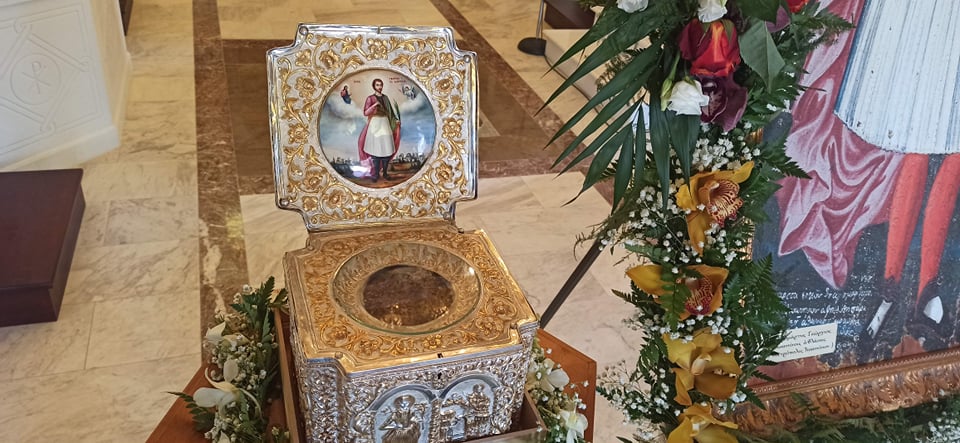 Με την τήρηση όλων των προβλεπόμενων μέτρων προστασίας και υπό το διακριτικό βλέμμα της ΕΛ.ΑΣ. προσήλθαν δεκάδες πιστοί την Κυριακή για να προσκυνήσουν αποτμήματα των Ιερών Λειψάνων του Αγίου μαζί με την Ιερά Εικόνα του.