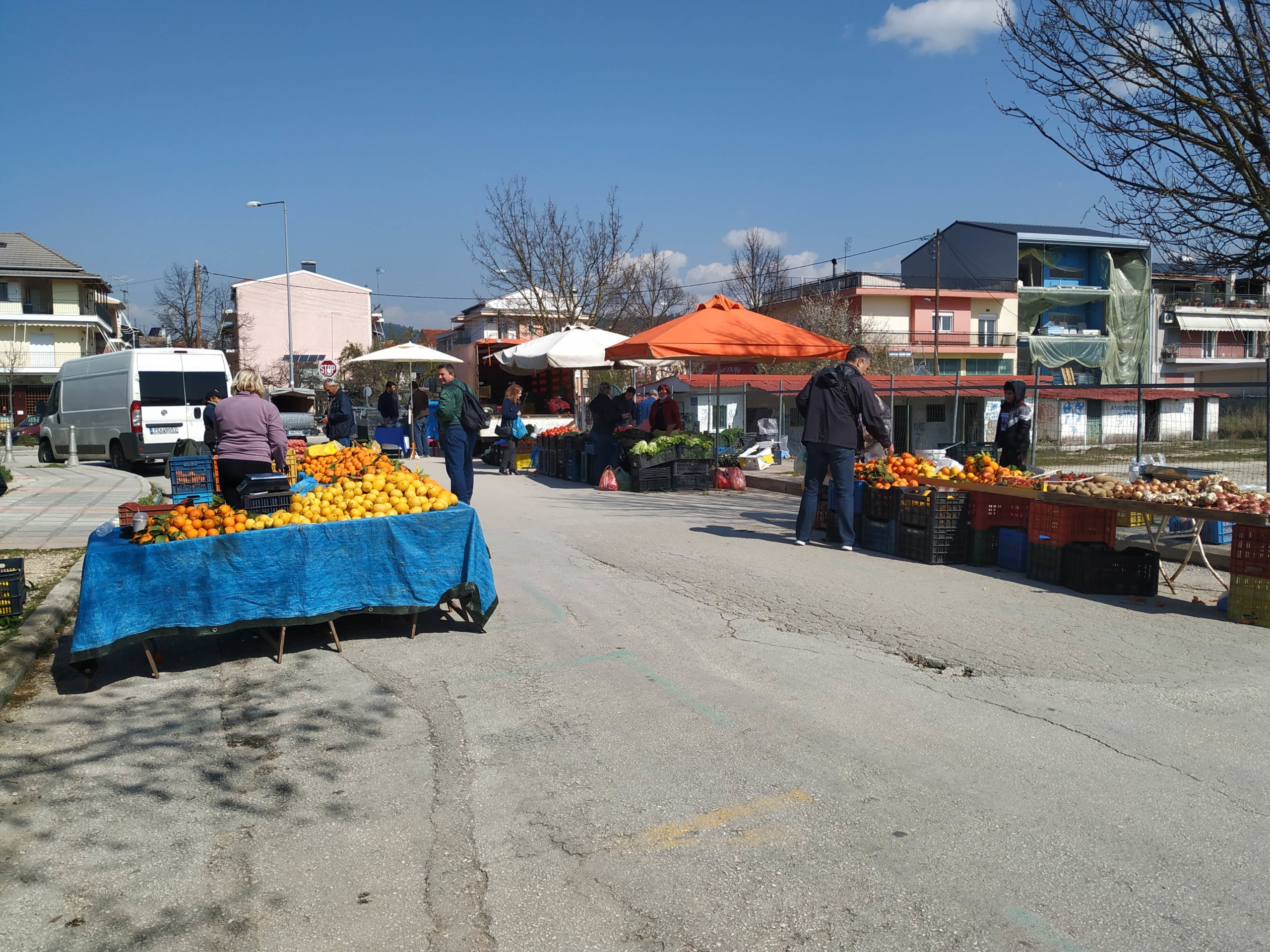 Με αυστηρή τήρηση των όρων προστασίας, όπως είναι η ελάχιστη απόσταση των 5 μέτρων μεταξύ των πάγκων, λειτούργησε σήμερα η λαϊκή αγορά στα Σεισμόπληκτα.
