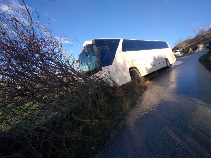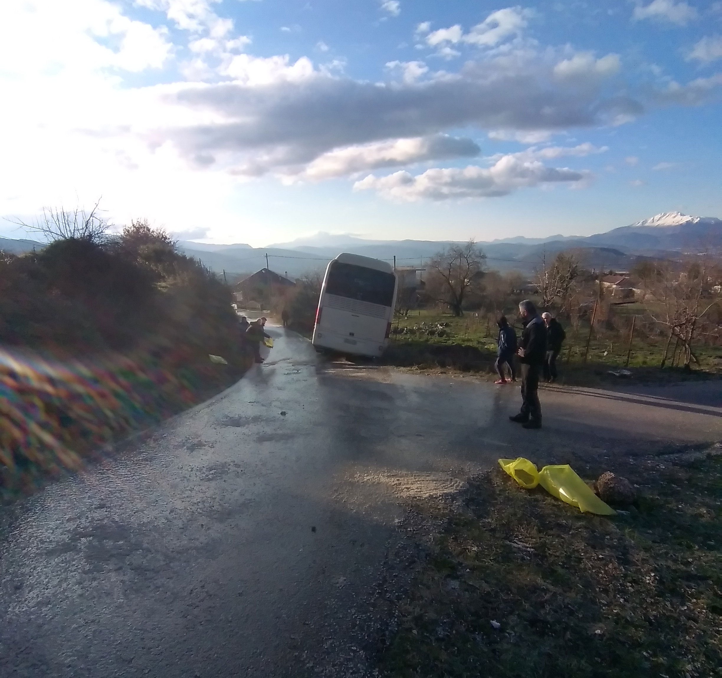Λεωφορείο του ΚΤΕΛ Ιωαννίνων, το οποίο κατευθυνόταν στη Μάζια για να παραλάβει και να μεταφέρει μαθητές στο δημοτικό Αμφιθέας, νωρίς το πρωί της Τετάρτης, έχασε τον έλεγχο λόγω παγετού και ολισθηρότητας του δρόμου, με αποτέλεσμα να βρεθεί εκτός οδοστρώματος.