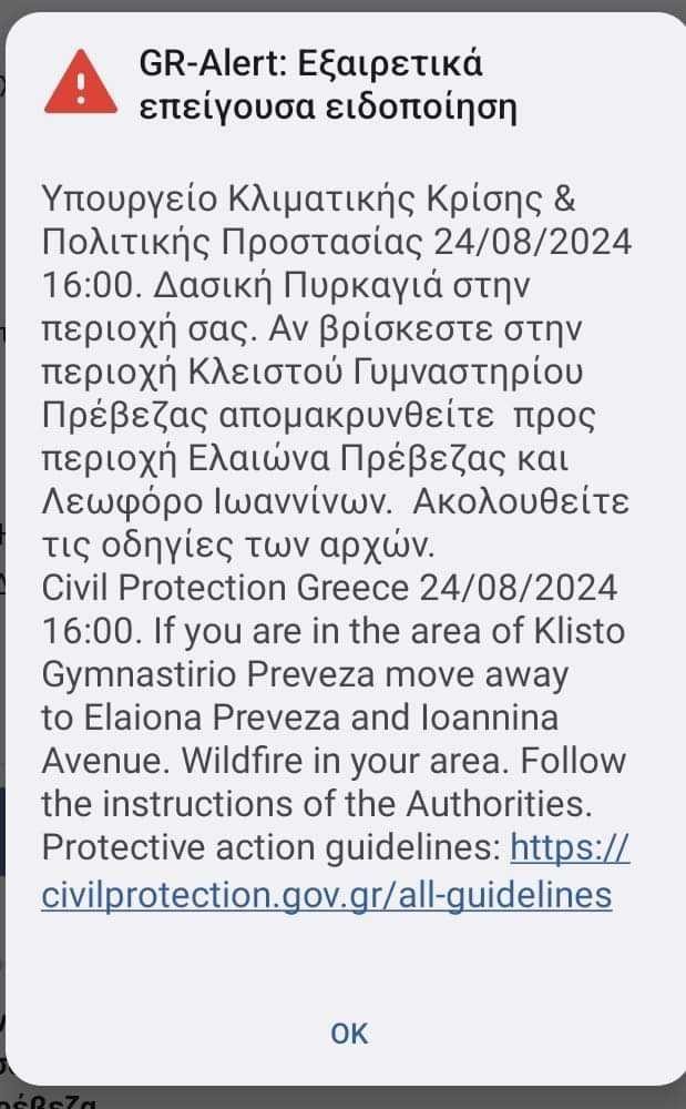Ήχησε πριν από λίγη ώρα το 112 στην περιοχή της Πρέβεζας. Οι κάτοικοι, αλλά και οι επισκέπτες της περιοχής ενημερώθηκαν για την εκδήλωση δασικής πυρκαγιάς προκειμένου να ακολουθήσουν τις οδηγίες που τους δίνονται.