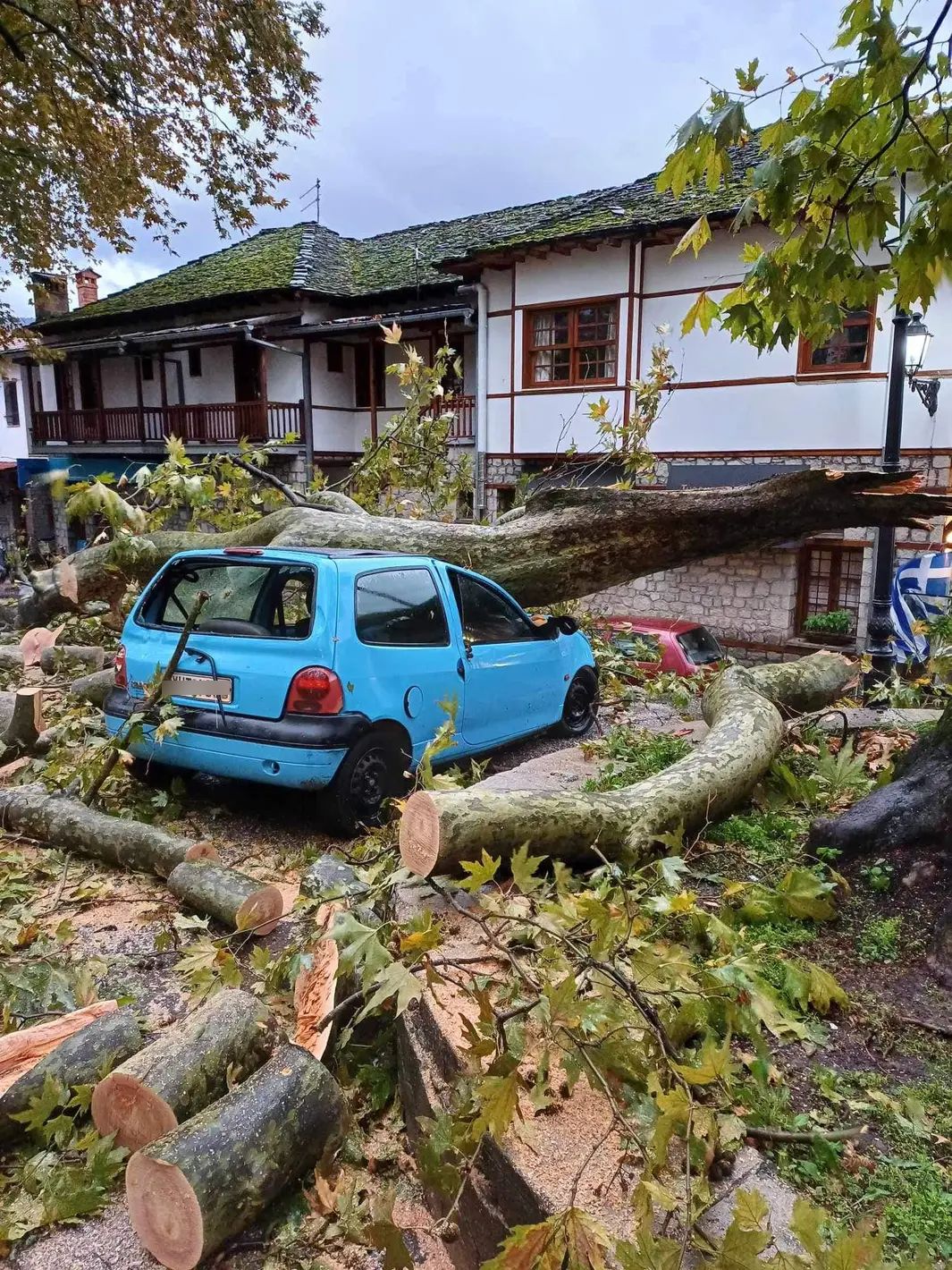 Ζημιές προκλήθηκαν το βράδυ σε σταθμευμένα οχήματα στο κέντρο του Μετσόβου, όταν λόγω των δυνατών ανέμων έσπασαν μεγάλα κλαδιά δένδρων που καταπλάκωσαν τα οχήματα με την Πυροσβεστική Υπηρεσία να τα απομακρύνει από το πρωί του Σαββάτου.