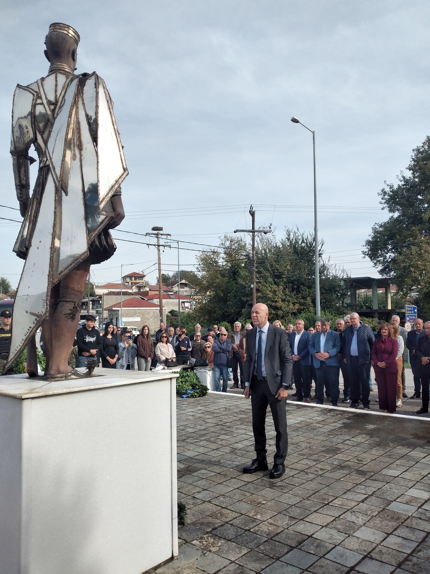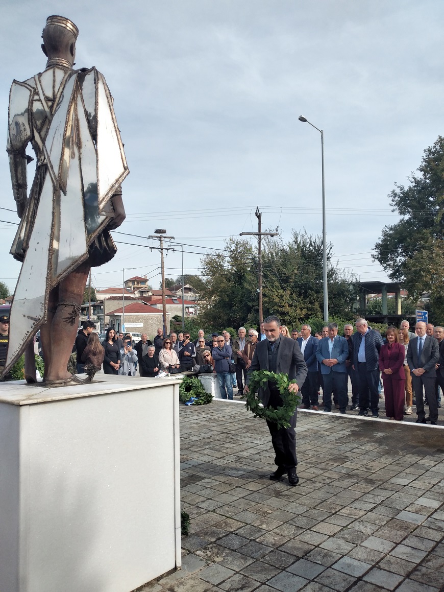 Η εκδήλωση ξεκίνησε στο Μνημείο του Ήρωα με επιμνημόσυνη δέηση από τον Αρχιερατικό Επίτροπο Ιεράς Μητροπόλεως Επαρχίας Πωγωνίου π. Φίλιππο και κατάθεση στεφάνων από εκπροσώπους των αρχών, φορέων και μαθητών όλων των βαθμίδων εκπαίδευσης, ως ελάχιστη ένδειξη ευγνωμοσύνης και τιμής στη μνήμη του.