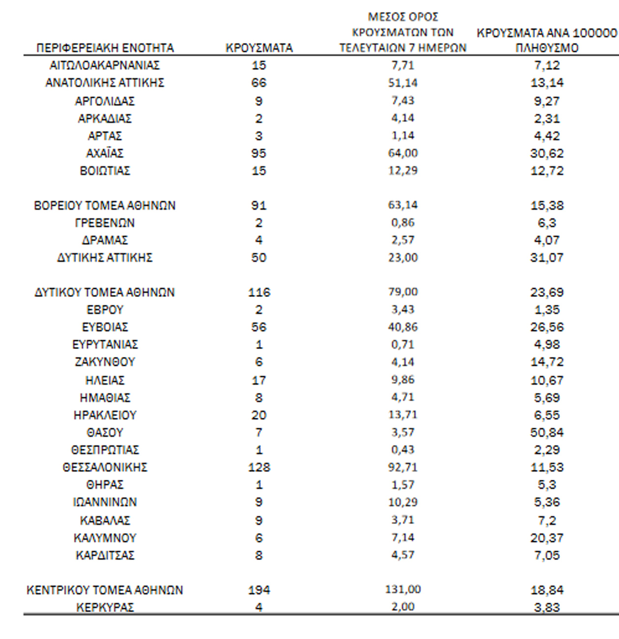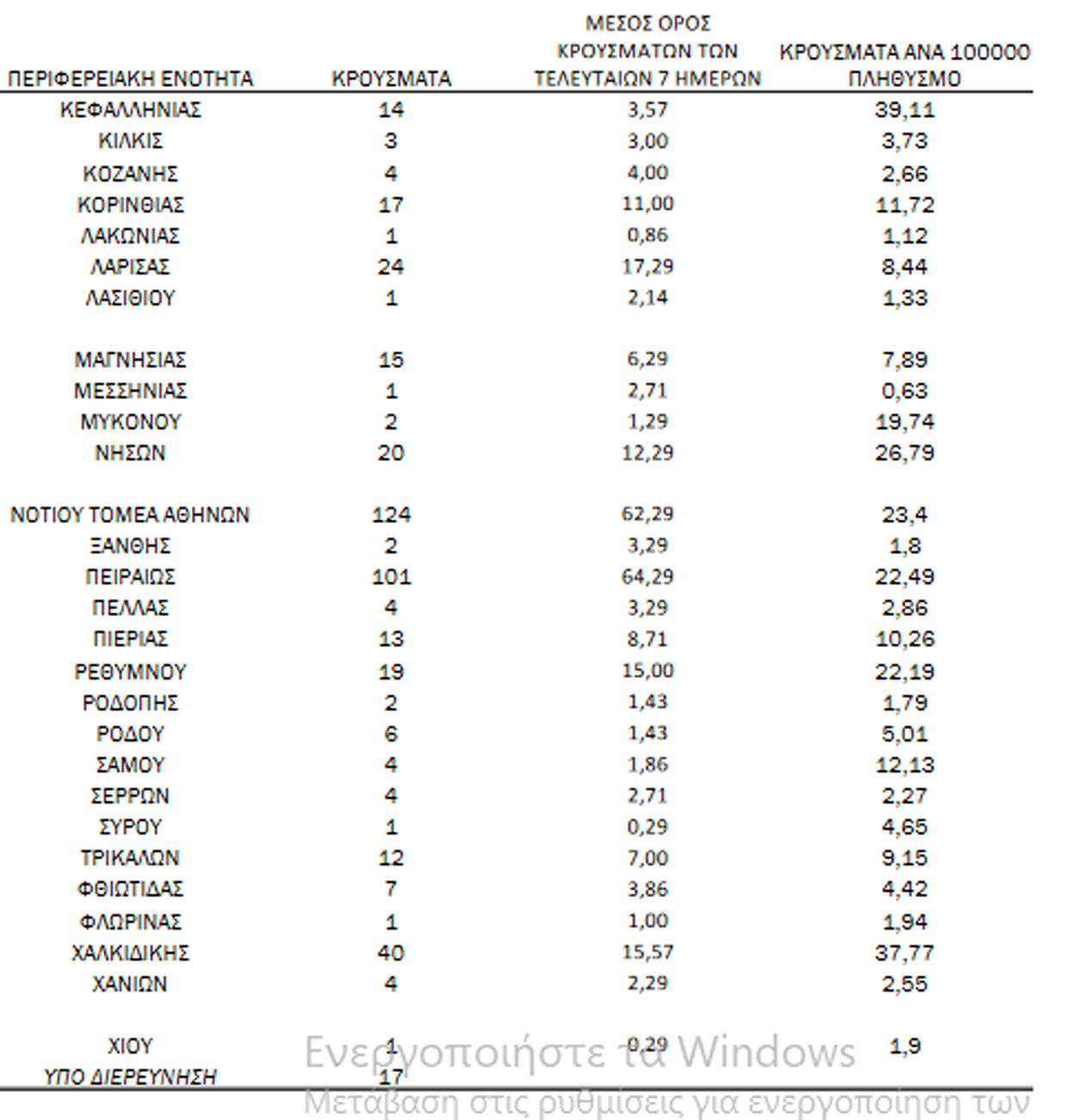 Δείτε αναλυτικά την γεωγραφική κατανομή των κρουσμάτων