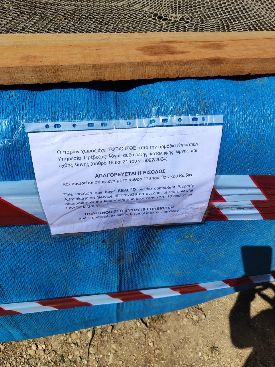Στη Λίμνη Ζηρού στο Ν. Πρέβεζας πραγματοποιήθηκε συντονισμένη επέμβαση του Υπουργείου Εθνικής Οικονομίας και Οικονομικών, του Δασαρχείου και της Ελληνικής Αστυνομίας, όπου επιχείρηση είχε καταλάβει παράνομα τμήμα της όχθης της λίμνης και των υδάτων.