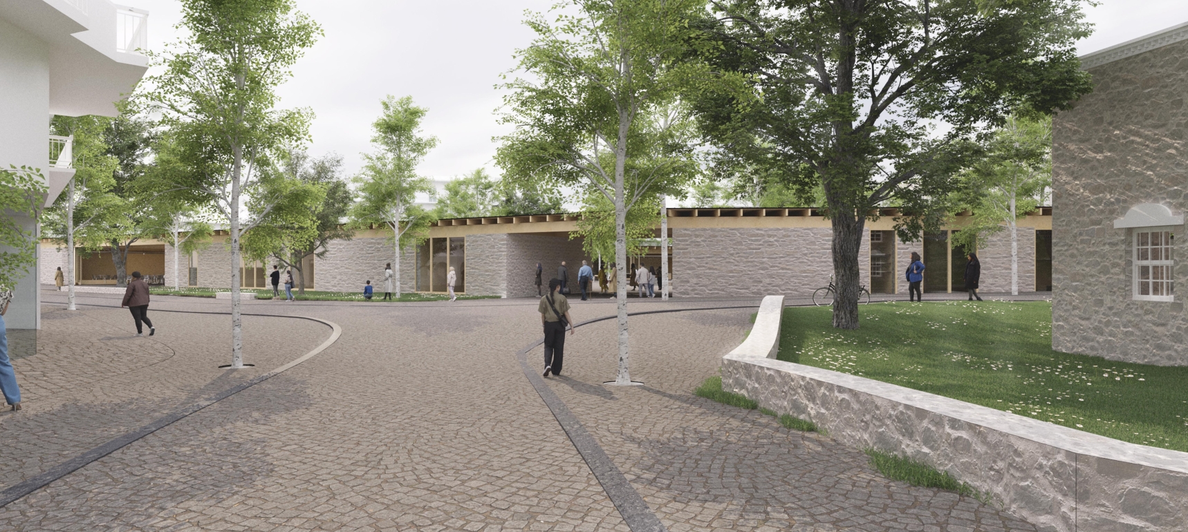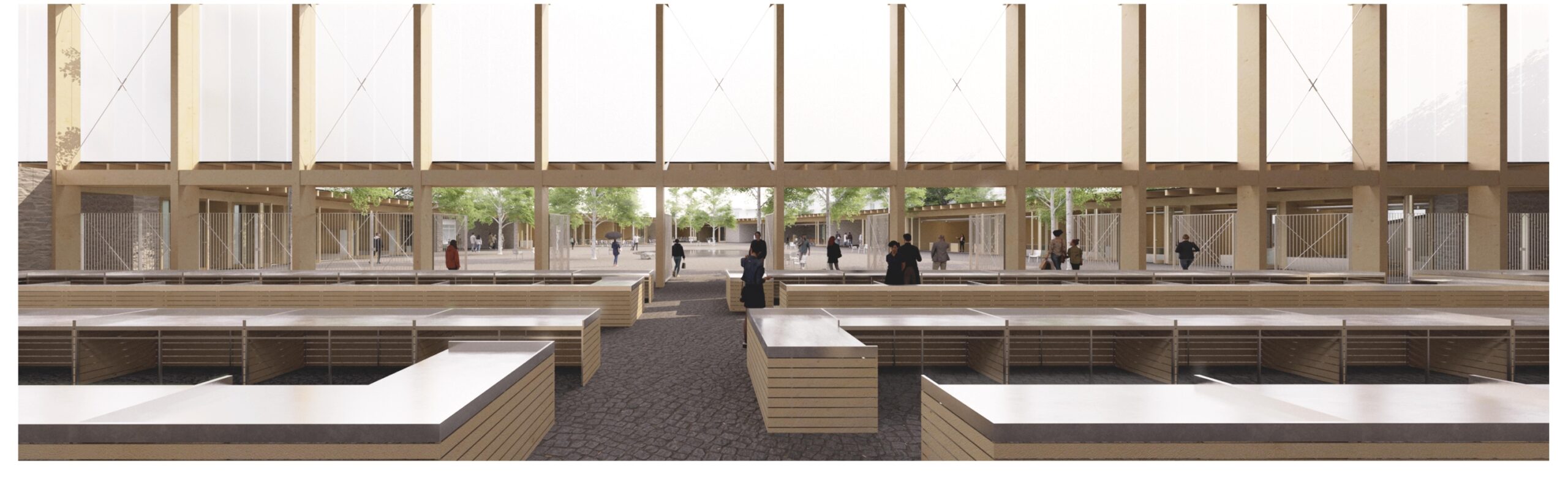 Επιπλέον, η πρόταση περιλαμβάνει χώρους πολιτιστικών δράσεων, όπως εργαστήρια τοπικών προϊόντων, καθώς και γραφεία διαχείρισης της αγοράς.