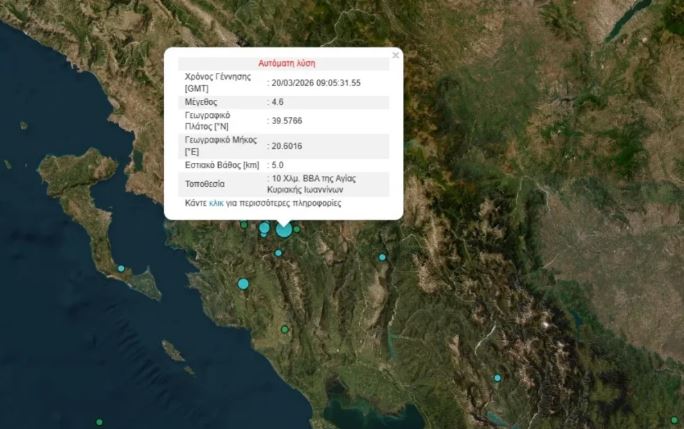 Σεισμική δόνηση μεγέθους 4,6 βαθμών της κλίμακας Ρίχτερ σημειώθηκε στις 11:05 το πρωί, προκαλώντας ανησυχία στους κατοίκους των Ιωαννίνων.