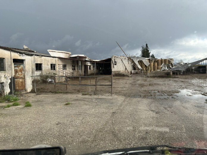 Τέσσερις κτηνοτροφικές μονάδες στις οποίες σταβλίζονταν δεκάδες αγελάδες βρέθηκαν στο στόχαστρο του ανεμοστρόβιλου που πέρασε τη νύχτα της Πέμπτης από την Τ.Κ Αγίου Σπυρίδωνα του δήμου Αρταίων και σάρωσε τα πάντα στο πέρασμά του.
