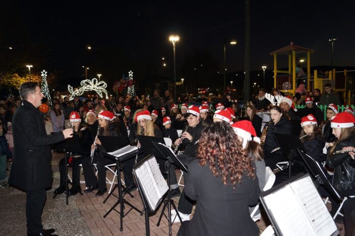 Η πλατεία Δημαρχείου και οι γύρω δρόμοι πλημμύρισαν από νωρίς το απόγευμα με χριστουγεννιάτικες μελωδίες που απέδωσαν οι μουσικοί της η Φιλαρμονικής του Δήμου υπό τη διεύθυνση του μαέστρου Χρήστου Γεωργάνου, ενώ κάλαντα και χριστουγεννιάτικα τραγούδια ερμήνευσαν οι χορωδοί της παιδικής χορωδίας υπό την καθοδήγηση του δασκάλου τους Γιώργου Τσομίδη.