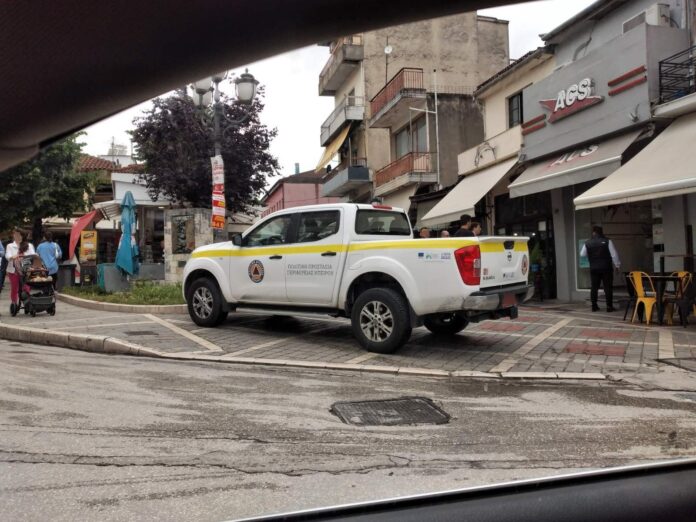 Αυτοκίνητο με διακριτικά της Πολιτικής Προστασίας παράνομα σταθμευμένο στον πεζόδρομο της Καλλάρη!