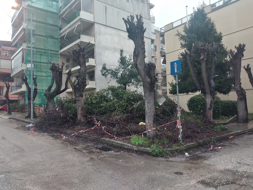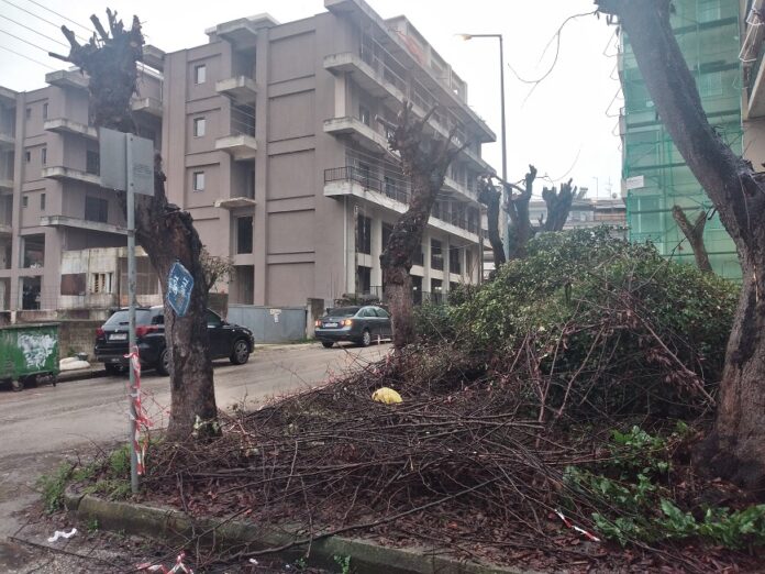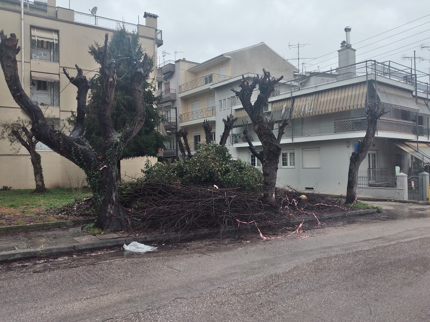Το κλάδεμα των δένδρων έγινε από την υπηρεσία Πρασίνου, όμως οι όγκοι των κλαδεμάτων έμειναν εκεί