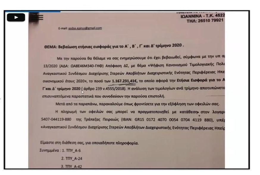 Τέλος στο Δημοτικό Συμβούλιο έγινε γνωστό ότι οι χρεώσεις από τον ΦΟΔΣΑ δεν γίνονται απολογιστικά. Στο Δήμο Ιωαννιτών έχουν φτάσει τέσσερα τιμολόγια του Φορέα, για τα τέσσερα τρίμηνα του έτους, με συνολικό ποσό 1,2 εκατομμύρια ευρώ. Κι αυτό χωρίς να έχουν τεθεί σε λειτουργία οι σταθμοί μεταφόρτωσης, χωρίς να έχει στελεχωθεί ο ΦΟΔΣΑ και χωρίς να έχει προχωρήσει καμία από τις δράσεις που συμπεριλαμβανόταν στο πρόγραμμα του Φορέα.