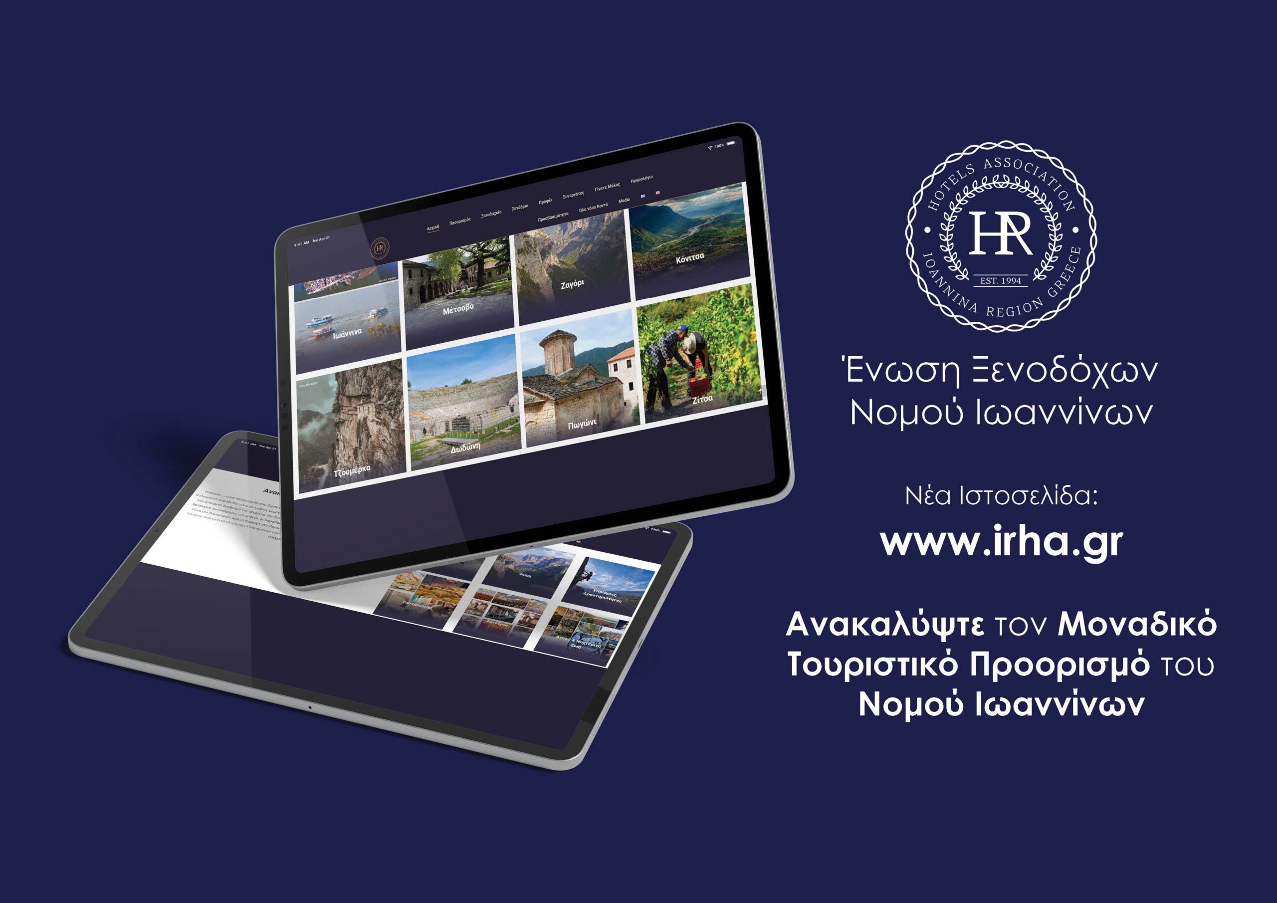 Η νέα ιστοσελίδα της Ένωσης Ξενοδόχων Νομού Ιωαννίνων παρουσιάστηκε από τον πρόεδρο και τα μέλη του Δ.Σ. www.irha.gr: Τα πάντα για τα ξενοδοχεία και τον προορισμό σε ένα πολυχρηστικό εργαλείο.