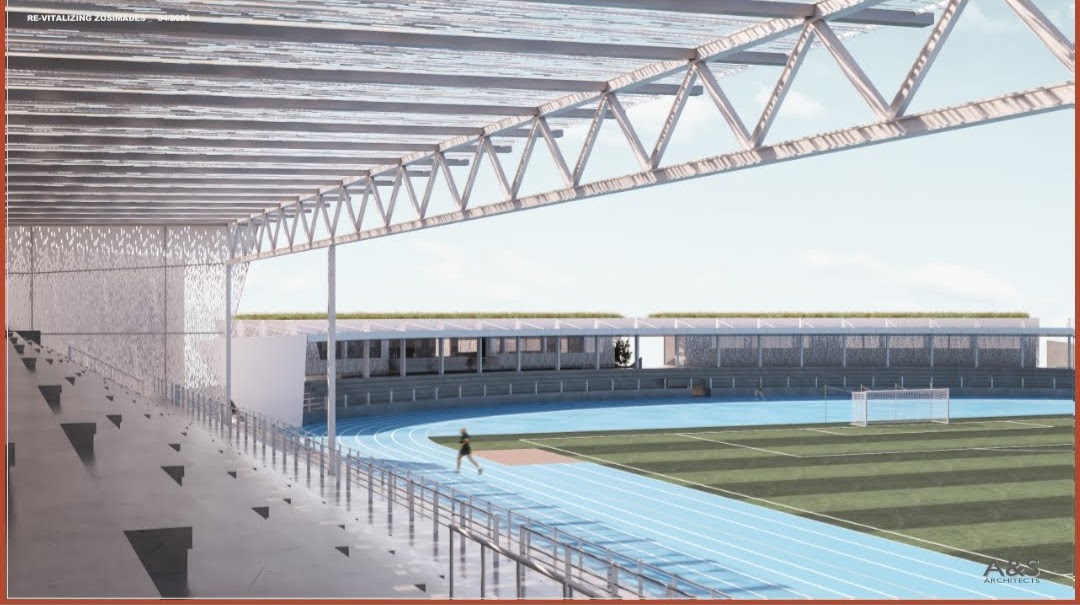 Με βάση λοιπόν την προμελέτη προβλέπεται όλες οι κερκίδες στους «Ζωσιμάδες» να είναι σκεπασμένες με νέα στέγαστρα, όπως επίσης υπερσύγχρονα Led φώτα, που συναντάς στα μεγάλα ευρωπαϊκά γήπεδα, καθώς και αισθητική παρέμβαση στους εξωτερικούς και εσωτερικούς χώρους του γηπέδου.