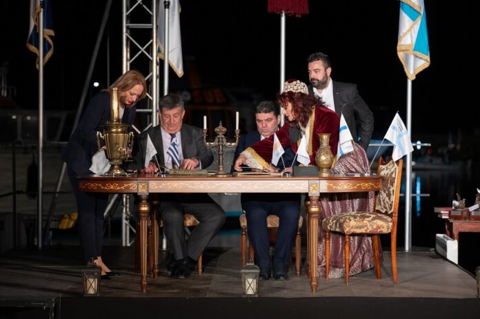 Στη συνέχεια προβλήθηκε ένα βίντεο για τον Χατζημιχάλη Νταλιάνη και το Δελβινάκι και ακολούθησε η υπογραφή του Πρωτοκόλλου ολοκλήρωσης της διαδικασίας Αδελφοποίησης των Δήμων Πωγωνίου και Αγίας Νάπας καθώς και ανταλλαγή δώρων.