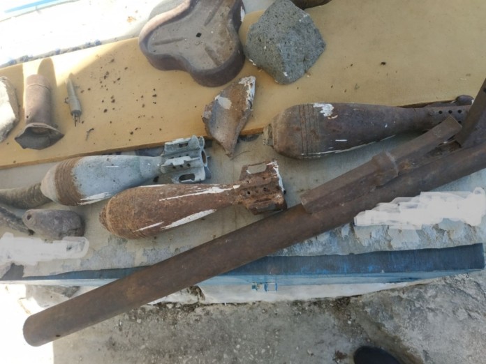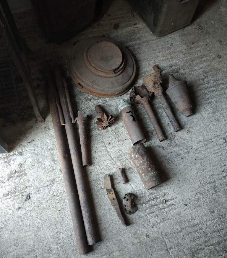- τρεις όλμοι, εκ των οποίων ο ένας με στρεβλωμένο πυροσωλήνα καθώς και μία ουρά όλμου, μη λειτουργική, με υπολείμματα εκρηκτικής ύλης,