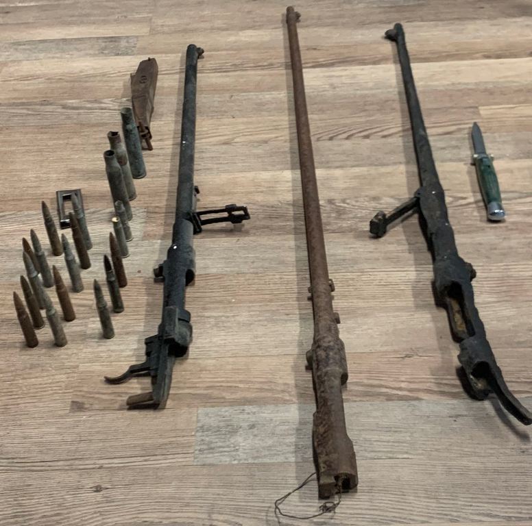 Το παραπάνω υλικό (πλην της χειροβομβίδας), βρέθηκε σε κατάσταση οξείδωσης και είναι περιόδου κατασκευής Β΄ Παγκοσμίου Πολέμου.
