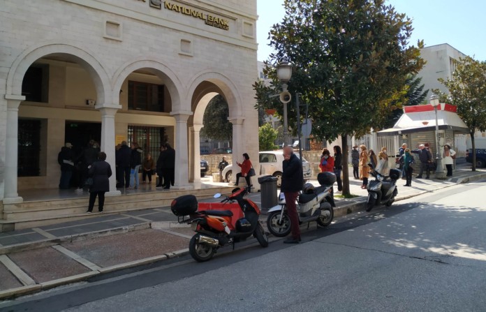 Εκατοντάδες πολίτες έσπευσαν στα υποκαταστήματα των τραπεζών είτε για να πληρωθούν τις συντάξεις είτε για να πληρώσουν λογαριασμούς ακόμη και ΔΕΚΟ, διαδικασία όμως πλέον, που δεν υποστηρίζεται από τις τράπεζες. Σχεδόν σε όλα τα τραπεζικά υποκαταστήματα δημιουργήθηκαν «ουρές» δεκάδων πολιτών, που περίμεναν τη σειρά τους για να φτάσουν στο γκισέ, αφού ελάχιστοι ήταν εκείνοι που χρησιμοποιούσαν τα ΑΤΜ.