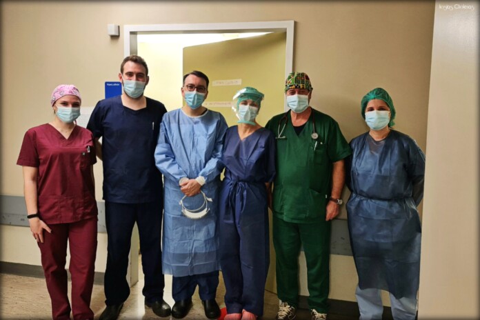 Αυτή ακριβώς η προετοιμασία απέδωσε και χθες καρπούς. Με την έγκριση και συνεχή παρακολούθηση από τον Δ/ντη της Μ/Γ Κλινικής και Αντιπρύτανη του Πανεπιστημίου Ιωαννίνων, Μηνά Πασχόπουλο, η ΚΤ διεκπεραιώθηκε από τον Μαιευτήρα-Γυναικολόγο, Επ.Β’ Θεοχάρη Ευαγγέλου και τους ειδικευόμενους ιατρούς, Στέφανο Φλίνδρη και Γαλάζιου Γεωργία, ενώ υπεύθυνος αναισθησιολόγος ήταν ο Δ/ντης ΕΣΥ, Λεωνίδας Δίσνιτσας.