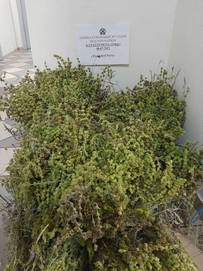 Αναλυτικότερα, οι αστυνομικοί, αξιοποιώντας κατάλληλα πληροφορίες, κατέλαβαν τον κατηγορούμενο να έχει συλλέξει παράνομα ποσότητα αρωματικού-φαρμακευτικού φυτού (τσάι βουνού) βάρους 21 κιλών.