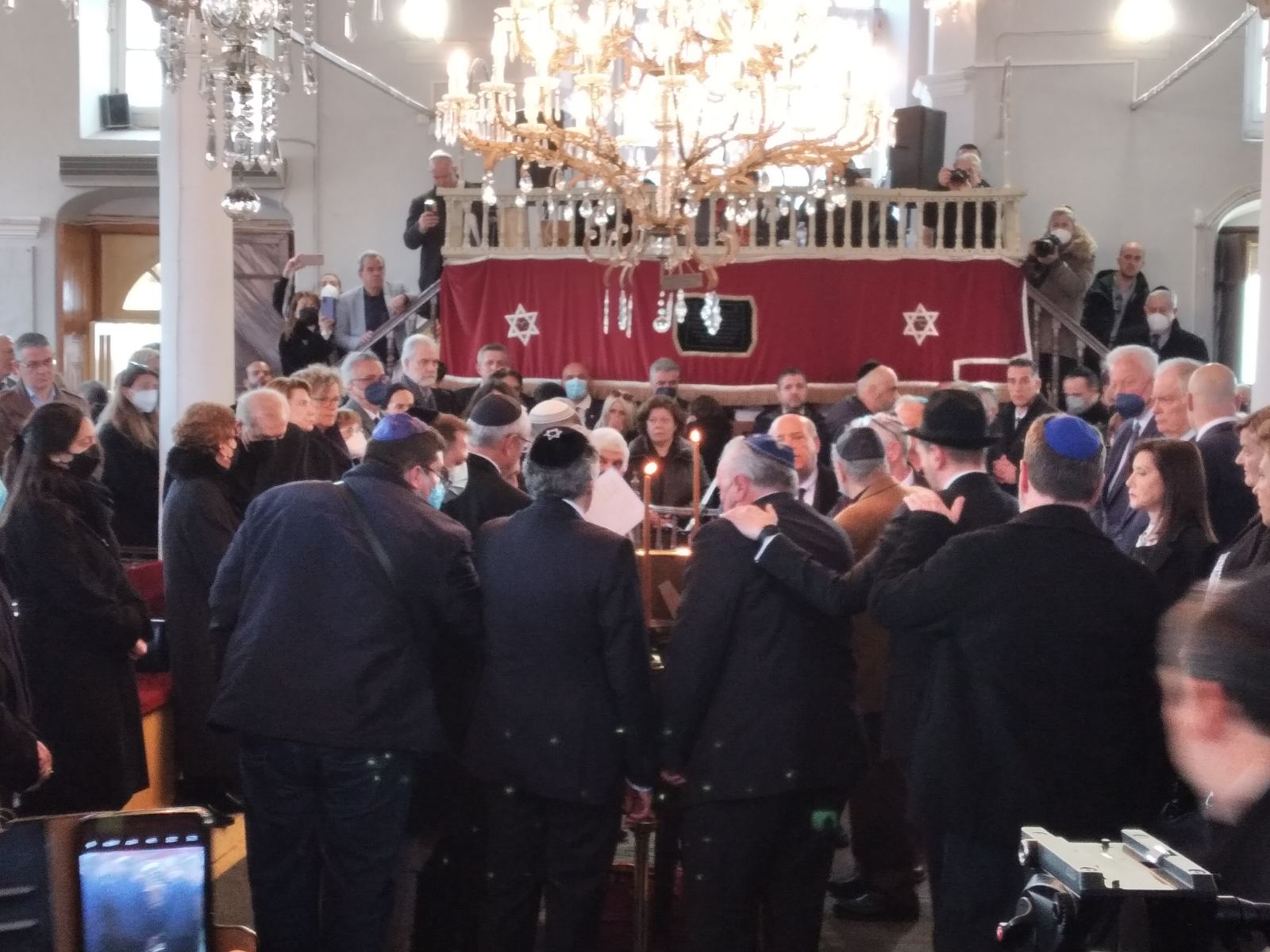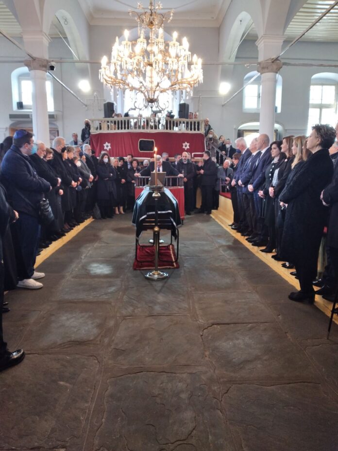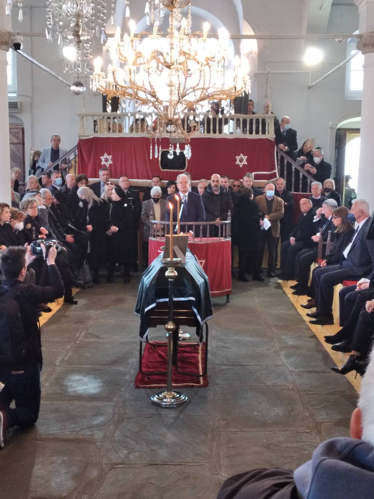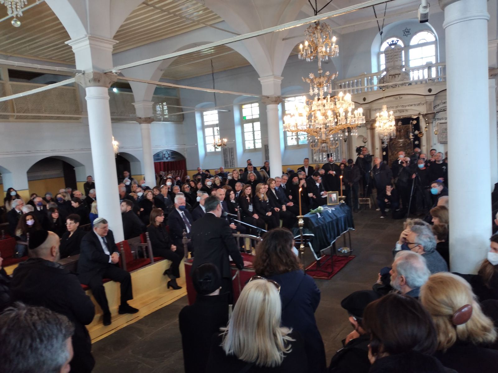 Η κηδεία γίνεται στην Εβραϊκή Συναγωγή Ιωαννίνων, παρουσία της Προέδρου της Δημοκρατίας, Κ. Σακελλαροπούλου, ενώ προηγήθηκε πομπή που πέρασε μπροστά από το Δημαρχείο.