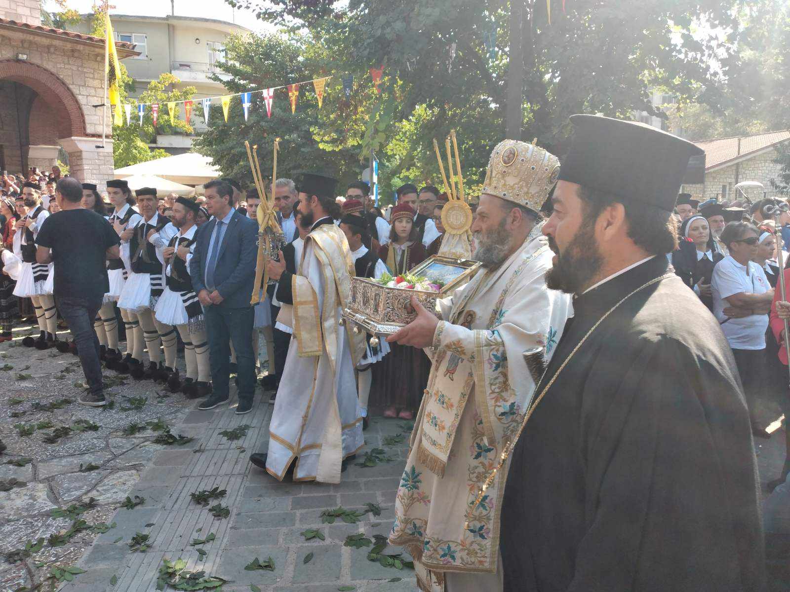 Νωρίτερα τελέστηκε πανηγυρική θεία λειτουργία στον Ιερό Ναό Αγίου Παϊσίου στην Κιάφα Ιωαννίνων προεξάρχοντος του Μητροπολίτη Ιωαννίνων κ. Μαξίμου.