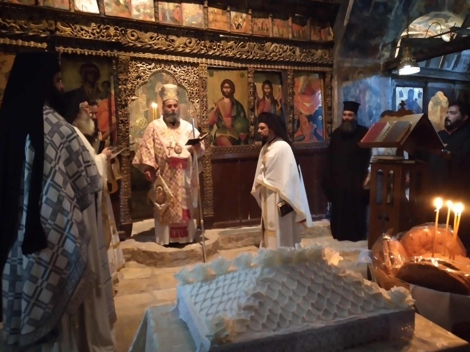 Το αντάμωμα άρχισε με Θεία Λειτουργία και Αρτοκλασία, στον ανακαινισμένο Ιερό Ναό της Μονής, μετά την αποκατάσταση των ζημιών από το σεισμό. Ακολούθησε επιμνημόσυνη δέηση για τους εκλιπόντες καθηγητές και σπουδαστές.