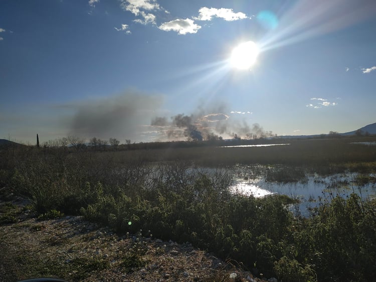 Ορατοί και από την Πρέβεζα οι μαύροι καπνοί στο βάλτο της Πέτρας