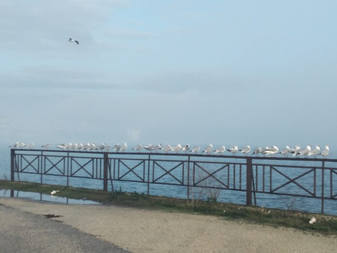 Η φωτογραφία τραβήχτηκε νωρίς το πρωί της Τρίτης στο παραλίμνιο των Ιωαννίνων προς τη θέση «Μάτσικας» εκεί όπου δεκάδες γλάροι «έπιασαν στασίδι» – ή κάγκελο για την κυριολεξία – σε μία πρωινή συνάντηση προετοιμασίας πριν την εξόρμησή τους για τροφή.