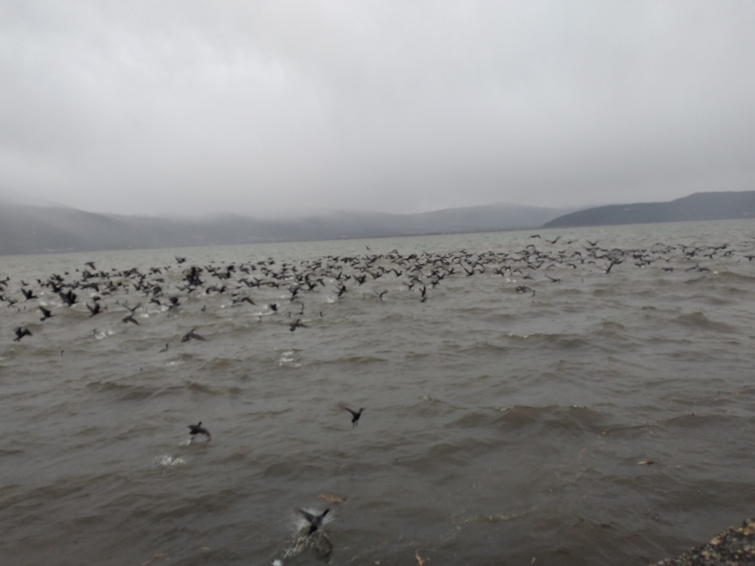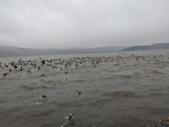 Πρωινή ψαροφαγία στην Παμβώτιδα από χιλιάδες κορμοράνους