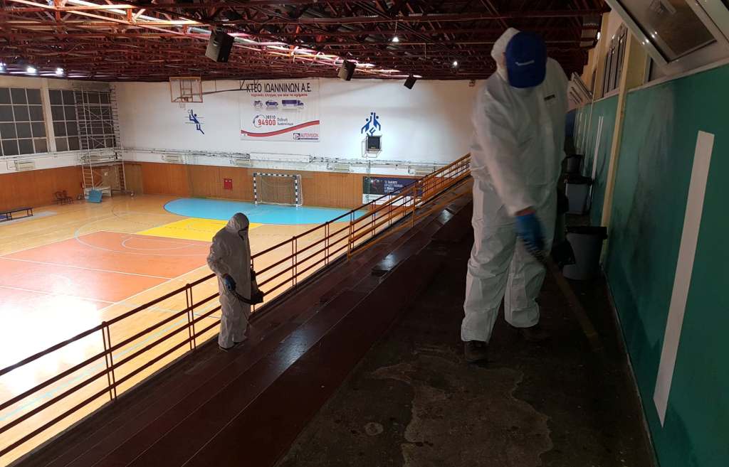 Πιο συγκεκριμένα το βράδυ της Τρίτης πραγματοποιήθηκε απολύμανση-ψεκασμός στους χώρους του κλειστού γυμναστηρίου της Λιμνοπούλας, ενώ σήμερα το πρωί ακολούθησαν οι χώροι του Σταδίου των «Ζωσιμάδων».