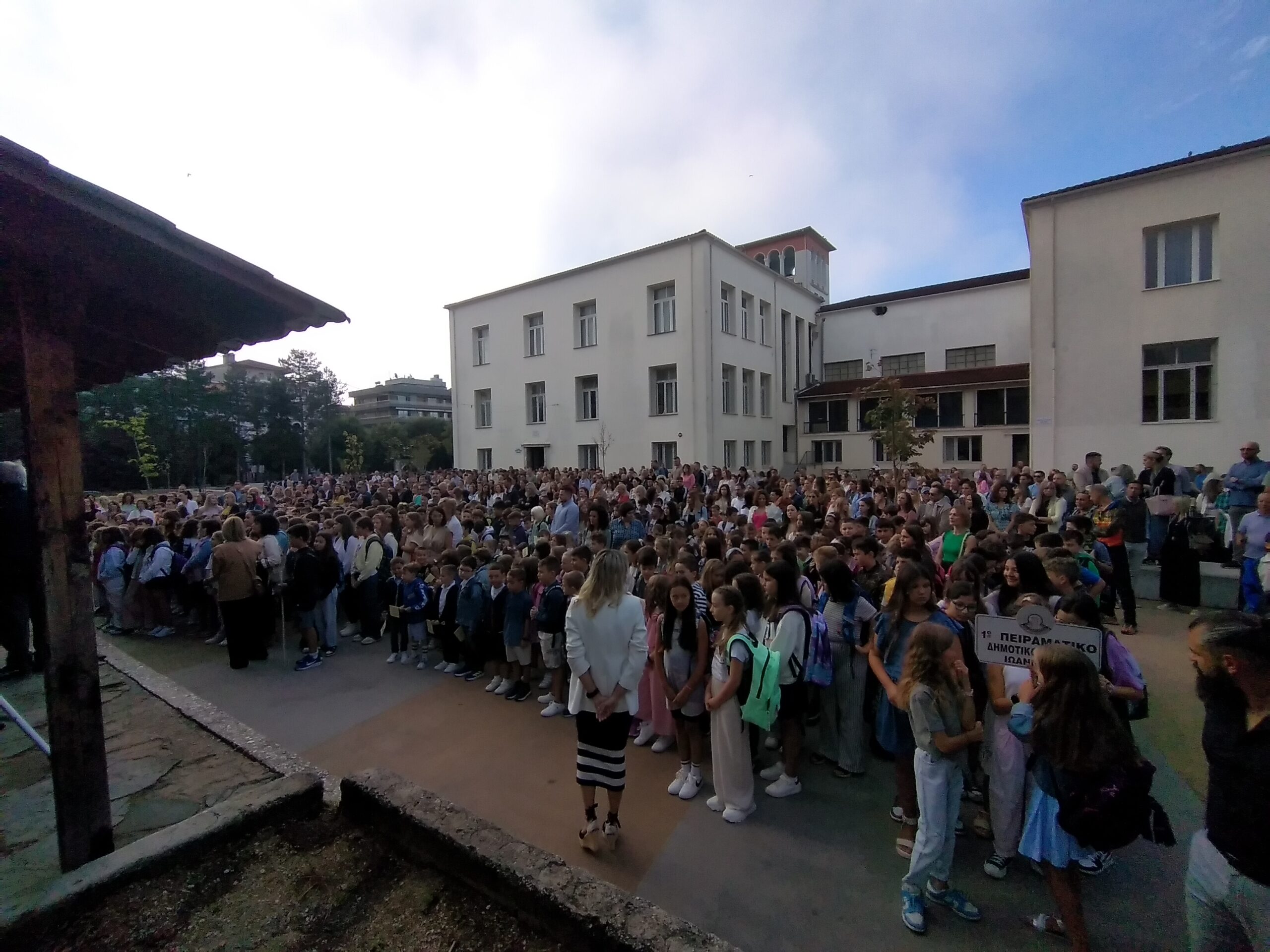 Στο μεγαλύτερο σχολικό συγκρότημα των Ιωαννίνων που συστεγάζονται Νηπιαγωγεία, Δημοτικά Σχολεία και το 4ο Λύκειο, χτύπησε το πρωί της Τετάρτης το πρώτο κουδούνι της νέας σχολικής χρονιάς για τους μαθητές. Μία χρονιά που ξεκινά με όνειρα, προσδοκίες για επίτευξη των στόχων, αλλά και με την αγωνία για το άγνωστο περιβάλλον που θα συναντήσουν να είναι ζωγραφισμένη στα μάτια των μαθητών της Α’ τάξης του Δημοτικού που είναι κάθε φορά οι «μικροί πρωταγωνιστές» του αγιασμού.