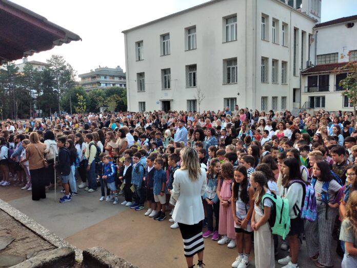 Στο μεγαλύτερο σχολικό συγκρότημα των Ιωαννίνων που συστεγάζονται Νηπιαγωγεία, Δημοτικά Σχολεία και το 4ο Λύκειο, χτύπησε το πρωί της Τετάρτης το πρώτο κουδούνι της νέας σχολικής χρονιάς για τους μαθητές. Μία χρονιά που ξεκινά με όνειρα, προσδοκίες για επίτευξη των στόχων, αλλά και με την αγωνία για το άγνωστο περιβάλλον που θα συναντήσουν να είναι ζωγραφισμένη στα μάτια των μαθητών της Α’ τάξης του Δημοτικού που είναι κάθε φορά οι «μικροί πρωταγωνιστές» του αγιασμού.