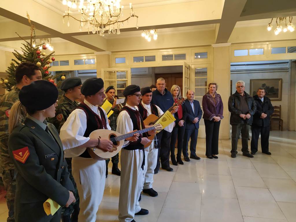Η μπάντα της Μεραρχίας έψαλλε τα πρωτοχρονιάτικα κάλαντα στην Περιφέρεια Ηπείρου, παρουσία του Περιφερειάρχη, Αλ. Καχριμάνη, περιφερειακών συμβούλων και προσωπικού.
