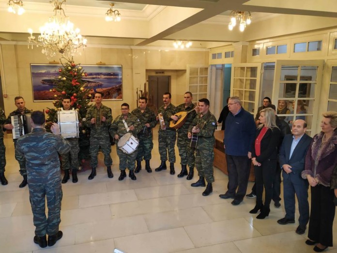 Η μπάντα της Μεραρχίας έψαλλε τα πρωτοχρονιάτικα κάλαντα στην Περιφέρεια Ηπείρου, παρουσία του Περιφερειάρχη, Αλ. Καχριμάνη, περιφερειακών συμβούλων και προσωπικού.
